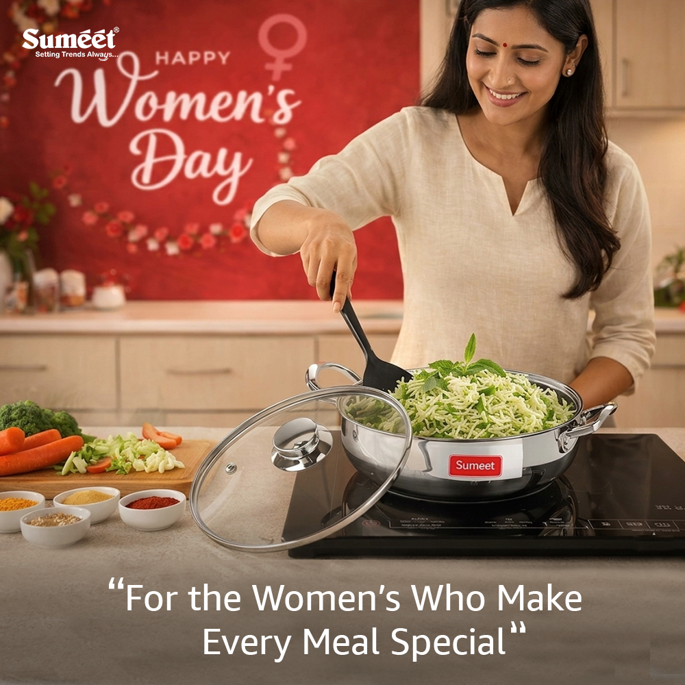 Sumeet Stainless Steel Kadhai With Glass Lid