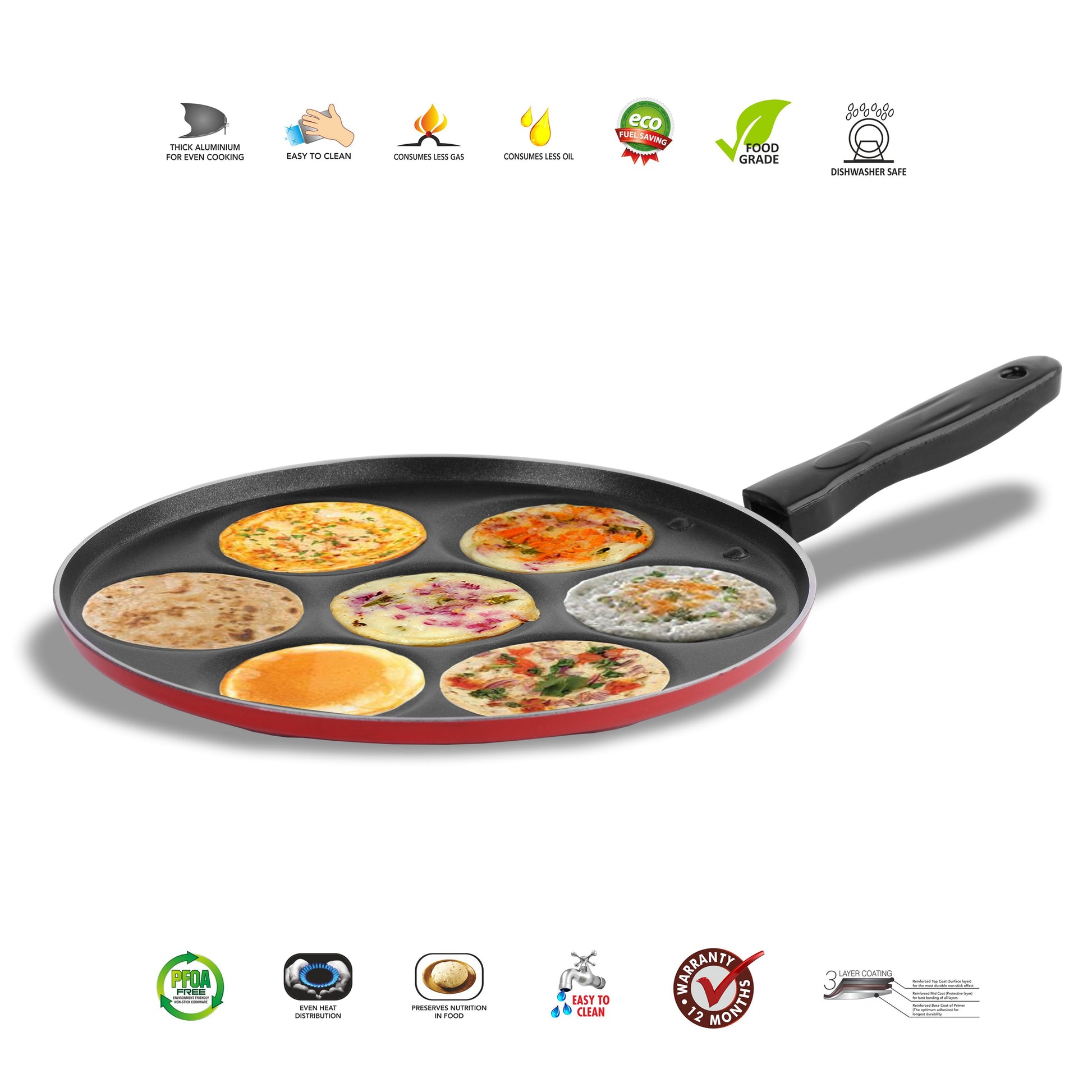Sumeet brings to you Aluminium Non-Stick Multi Snack Maker which has Slim design and Elegant look to surely fulfil your requirements. Unique design with 7 compartments for making various snack at the same time. This Non-Stick Tawa is specifically designed for preparing Uttapa, Mini Pancakes, Coin Pizza and many more. It is a useful addition to your kitchen space. It comes with Attractive look, which adds your kitchen's grace.