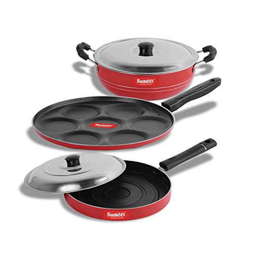 Sumeet 2.6mm Thick Non-Stick Amber Combo Set (Multi Snack Maker – 26.5cm Dia + Kadhai with Lid – 1.5Ltr Capacity- 20cm Dia + Pizza Pan – 23cm Dia)