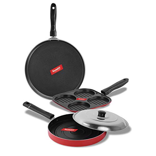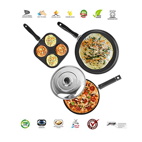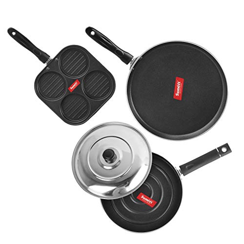 Sumeet 2.6mm Thick Non-Stick Flynn Combo Set (Dosa Tawa – 26.5cm Dia + Mini Multi Snack Maker – 19.5cm Dia + Pizza Pan – 23cm Dia)