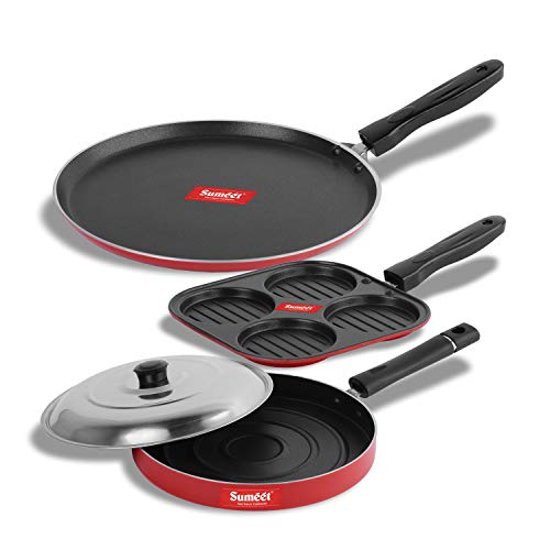Package: Sumeet 2.6mm Thick Non-Stick Flynn Combo Set (Dosa Tawa – 26.5cm Dia + Mini Multi Snack Maker – 19.5cm Dia + Pizza Pan – 23cm Dia)