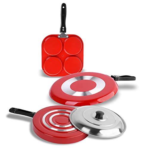 Featuring a unique Quick Snack maker with 3-layer non-stick coating with 4 separate compartments for making various snacks such as dosas, parathas, uttapam, pancakes, chilas and more, featuring an aesthetic design with 2.6 mm thickness, this pan is a great addition to your kitchen space. Bring home this handy snack maker and cook your favorite snacks in a healthy and wholesome manner.Dimension - L X W X H (cms): 19.5 X 19.5 X 1.5
