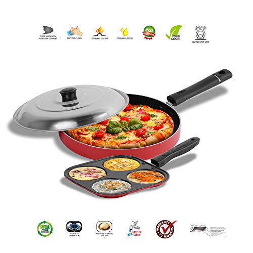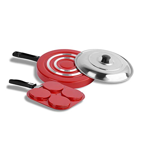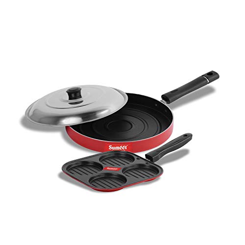 Sumeet 2.6mm Thick Non-Stick Merlot Cookware Set (Mini Multi Snack Maker – 19.5cm Dia + Pizza Pan – 23cm Dia)