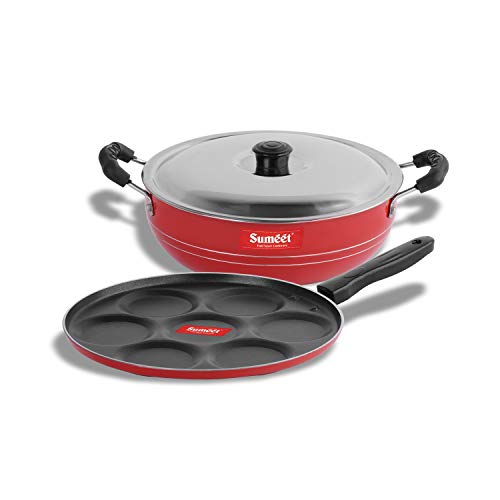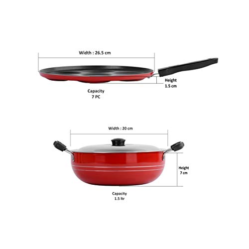 Sumeet 2.6mm Thick Non-Stick Rasberry Cookware Set (Multi Snack Maker – 26.5cm Dia + Kadhai with Lid – 1.5Ltr Capacity- 20cm Dia)