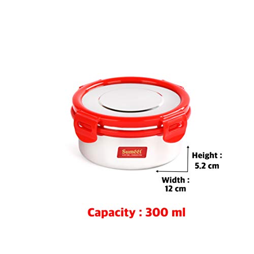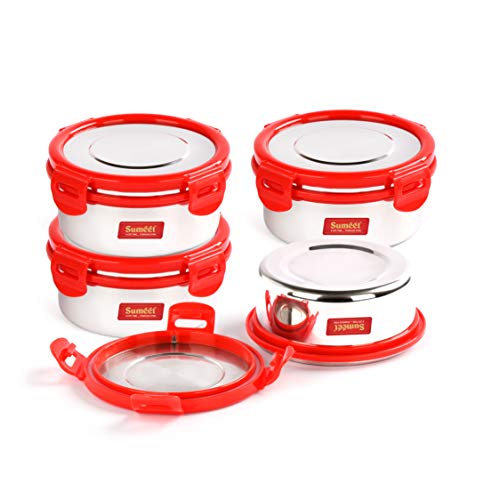 Sumeet Airtight & Leak Proof Steelexo S.S. Container/Lunch Box with Stainless Steel Lid Set of 4Pcs (300Ml Each)
