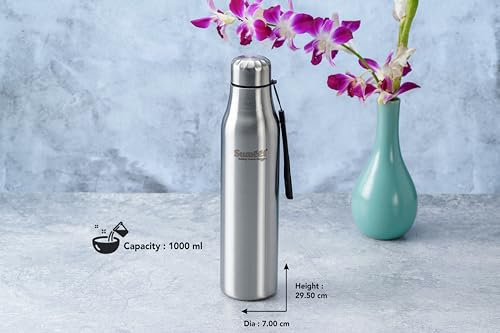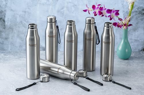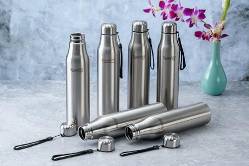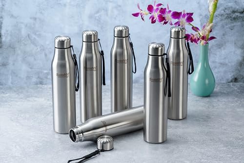 Sumeet Alpha-Aqua Stainless Steel Leak Proof Water Bottle Office/School/College/Gym/Picnic/Home/Fridge - 1 Litre |Pack of 6| Silver