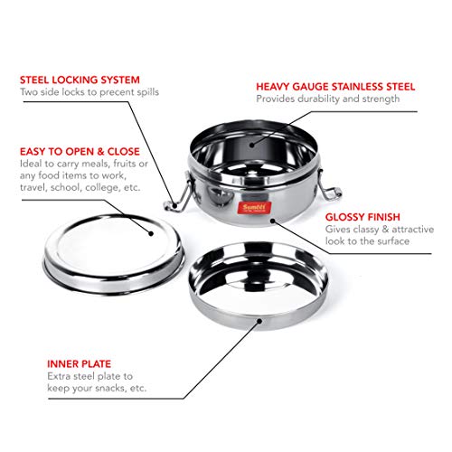 - Round tiffin helps you to carry a fair amount of food and steel seprator plate provides meal planning and portion control. Best suited for office, school, camping or hiking.