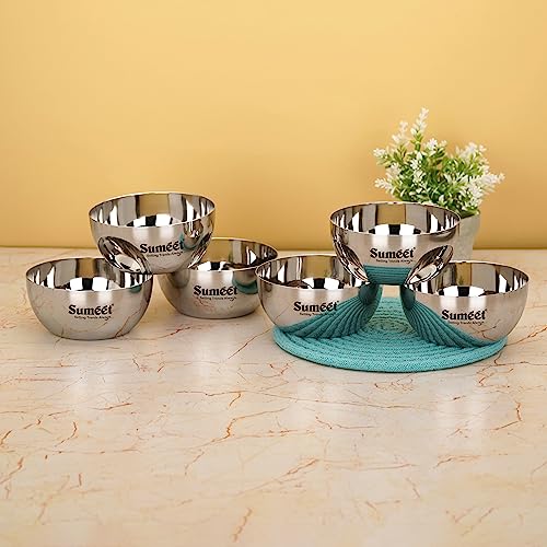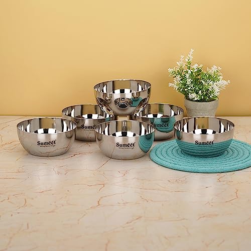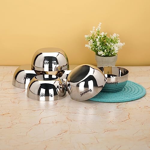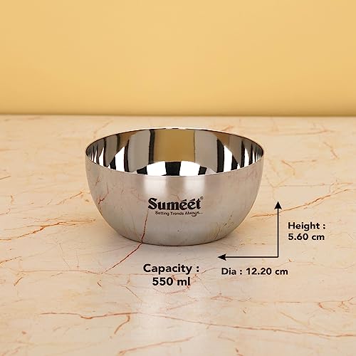 Sumeet Heavy Gauge Stainless Steel Big Size Apple Bowl/Wati/Katori with Mirror Finish – 12.2cm Dia, Set of 6pc, 550ML Each, Silver