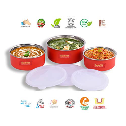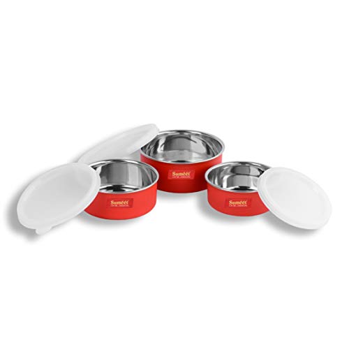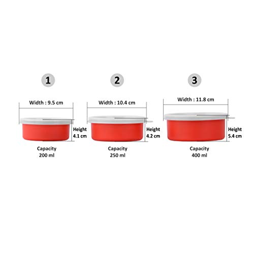 Sumeet Microwave Safe Stainless Steel + Plastic Coated Containers Set of 1-3 (200ml, 250ml, 400ml)