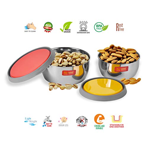 - Highly handy, easy-to-use, occupies less space and elegant Steel bowl with airtight lids to prevent Moisture