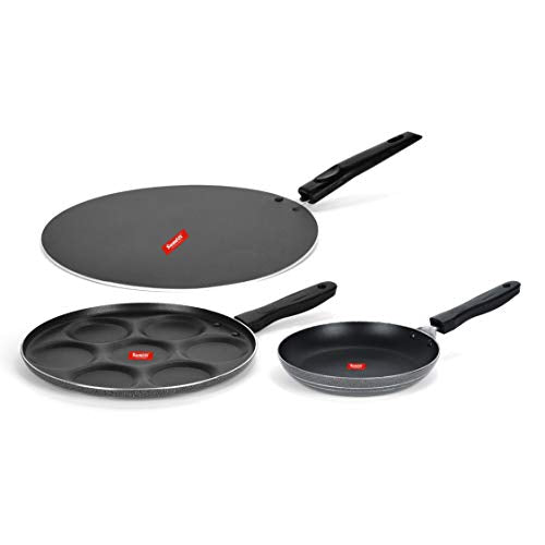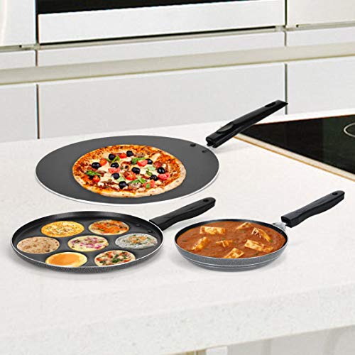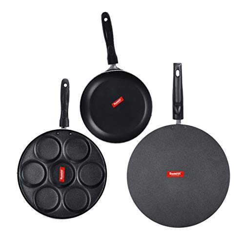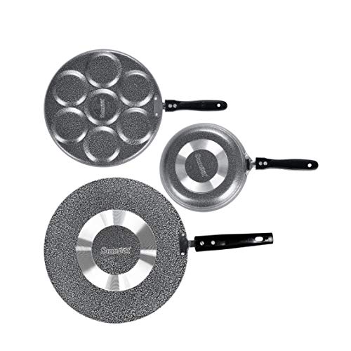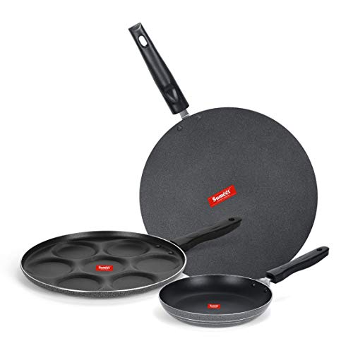 Sumeet NonStick Gri Cookware Set (Flat Tawa - 30.5cm Dia + Multi Snack Maker - 7 Cavity - 26.5Cm Dia + Tapper pan - 0.6Ltr - 20Cm Dia)