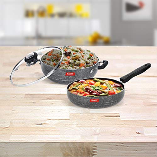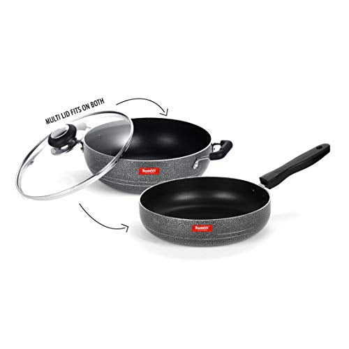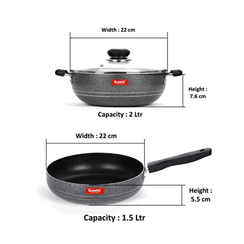 Sumeet NonStick Prata Cookware Set (Kadhai with Glass Lid -2Ltr - 22Cm Dia + Frypan - 1.5Ltr - 22Cm Dia)
