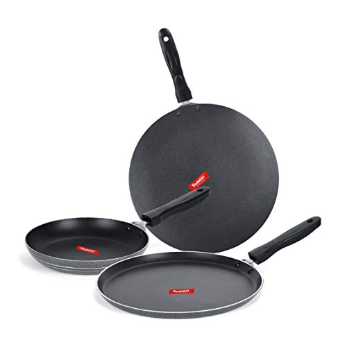 Sumeet NonStick Salaka Cookware Set (Dosa Tawa - 26.5Cm Dia + Tapper pan - 0.6Ltr - 20Cm Dia + Conceve/Roti Tawa - 28Cm Dia)