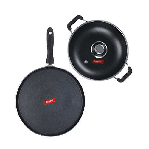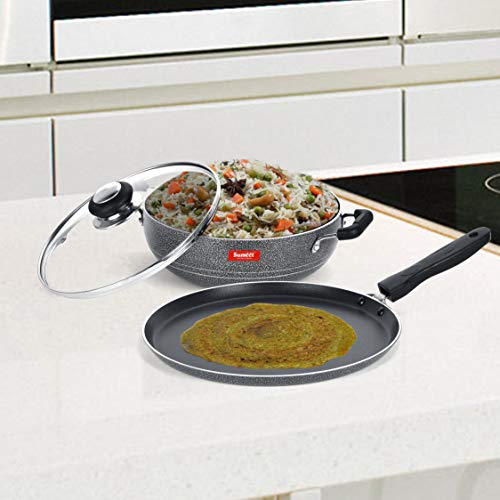 Sumeet NonStick Zilarra Cookware Set (Dosa Tawa - 26.5Cm Dia + Kadhai with Glass Lid -2Ltr - 22Cm Dia)