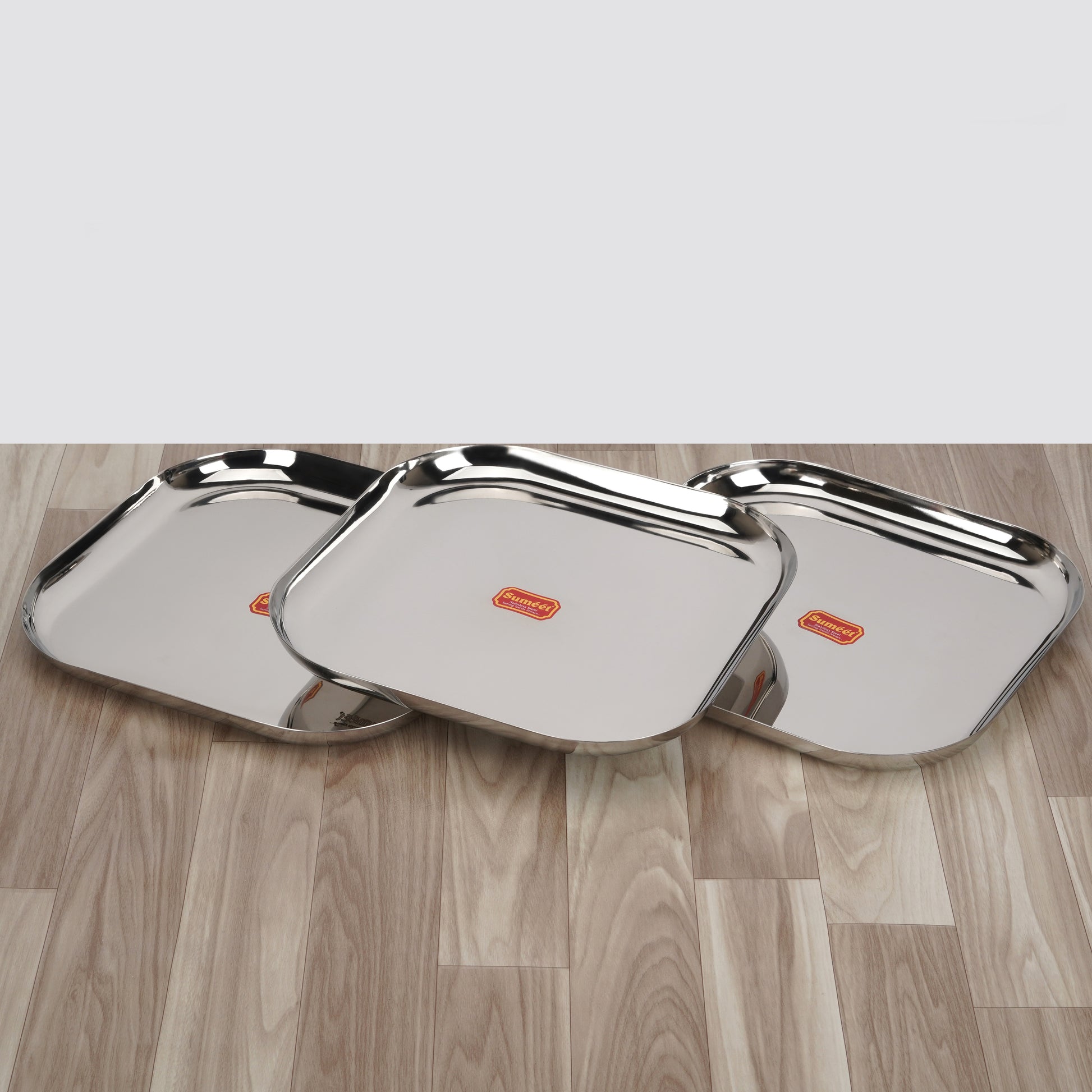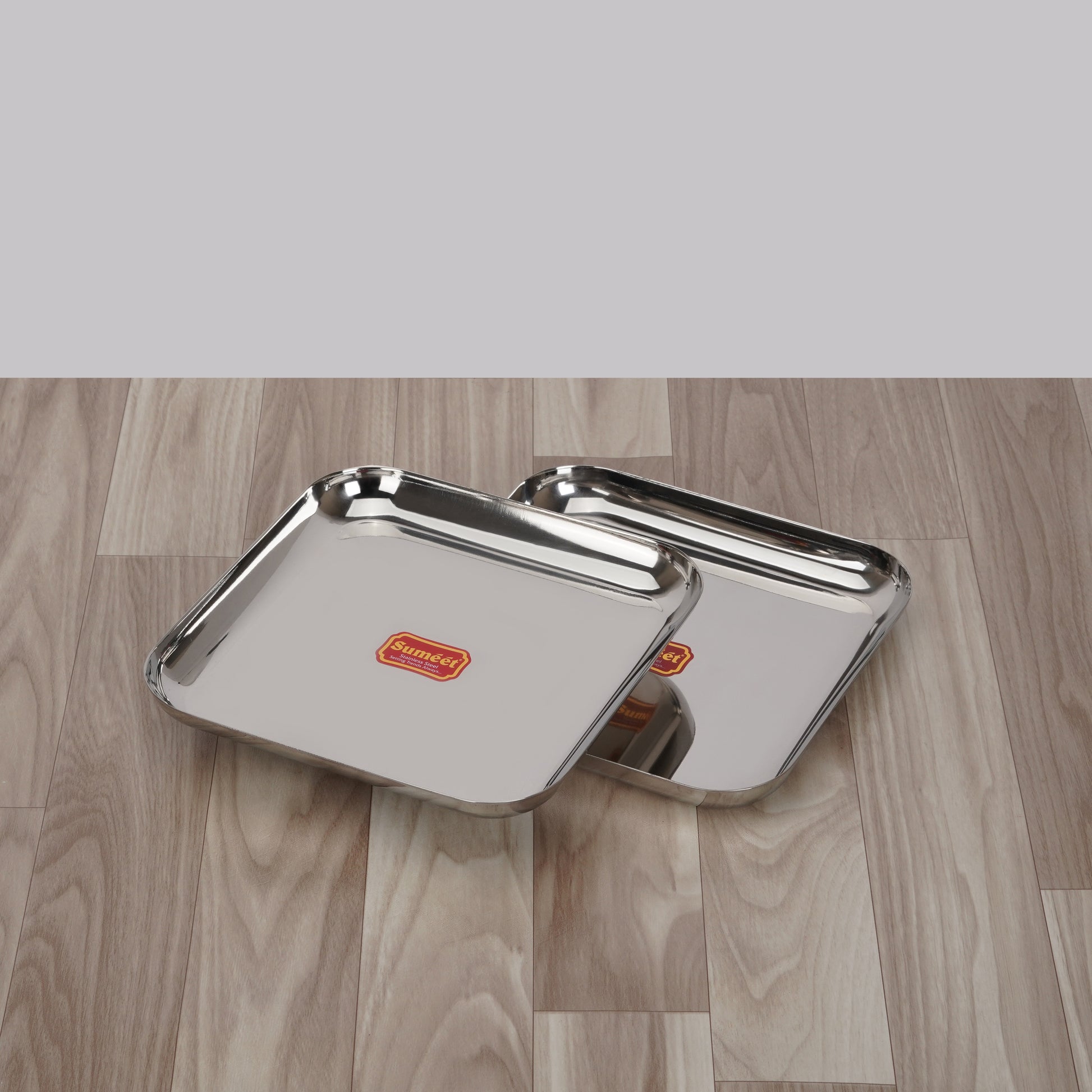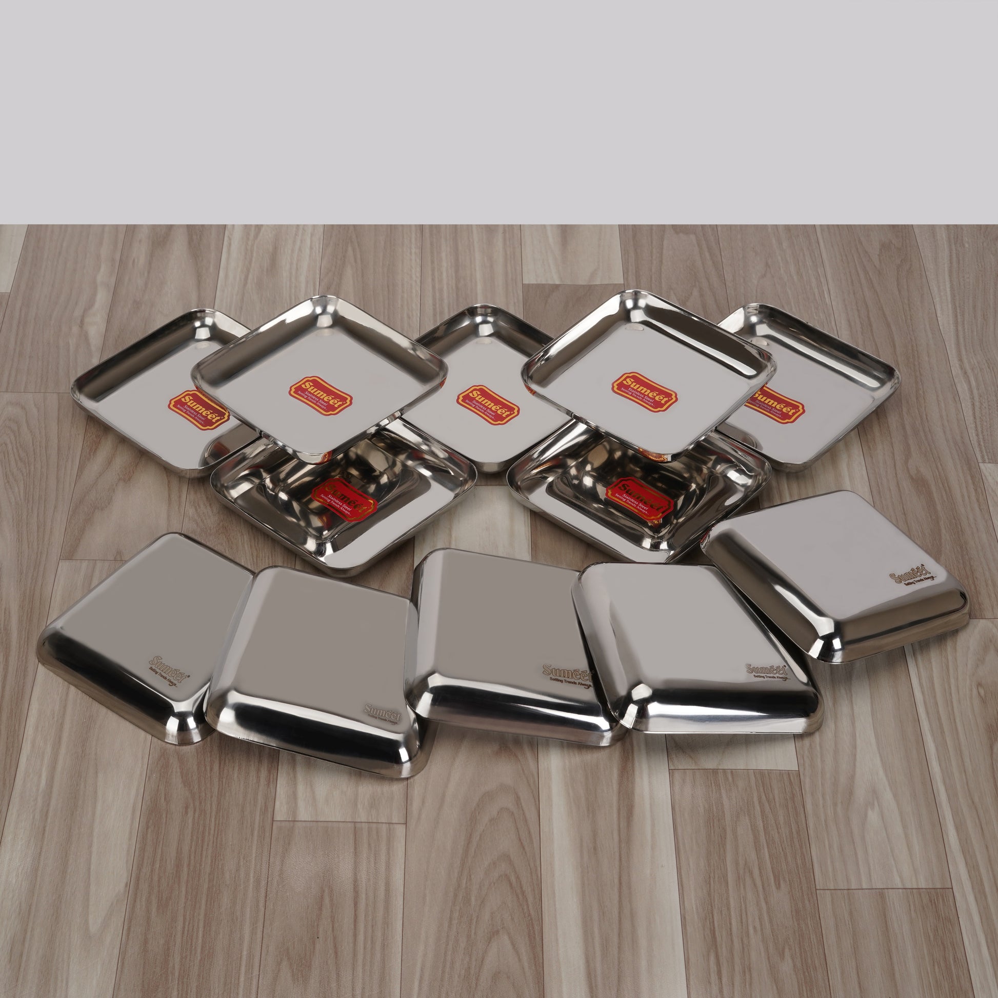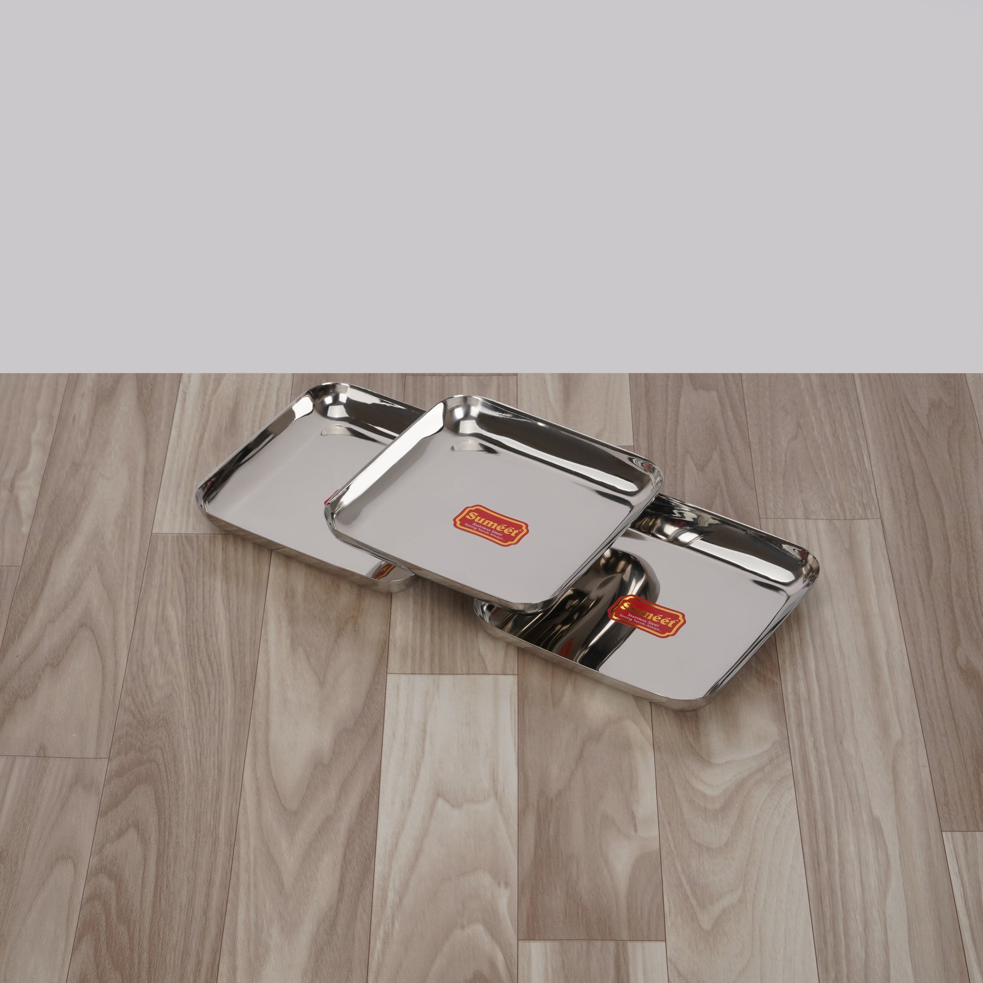 Sumeet Stainless Steel Big Square Shape Plate/Dinner Plate/Lunch - Meal Plate Set