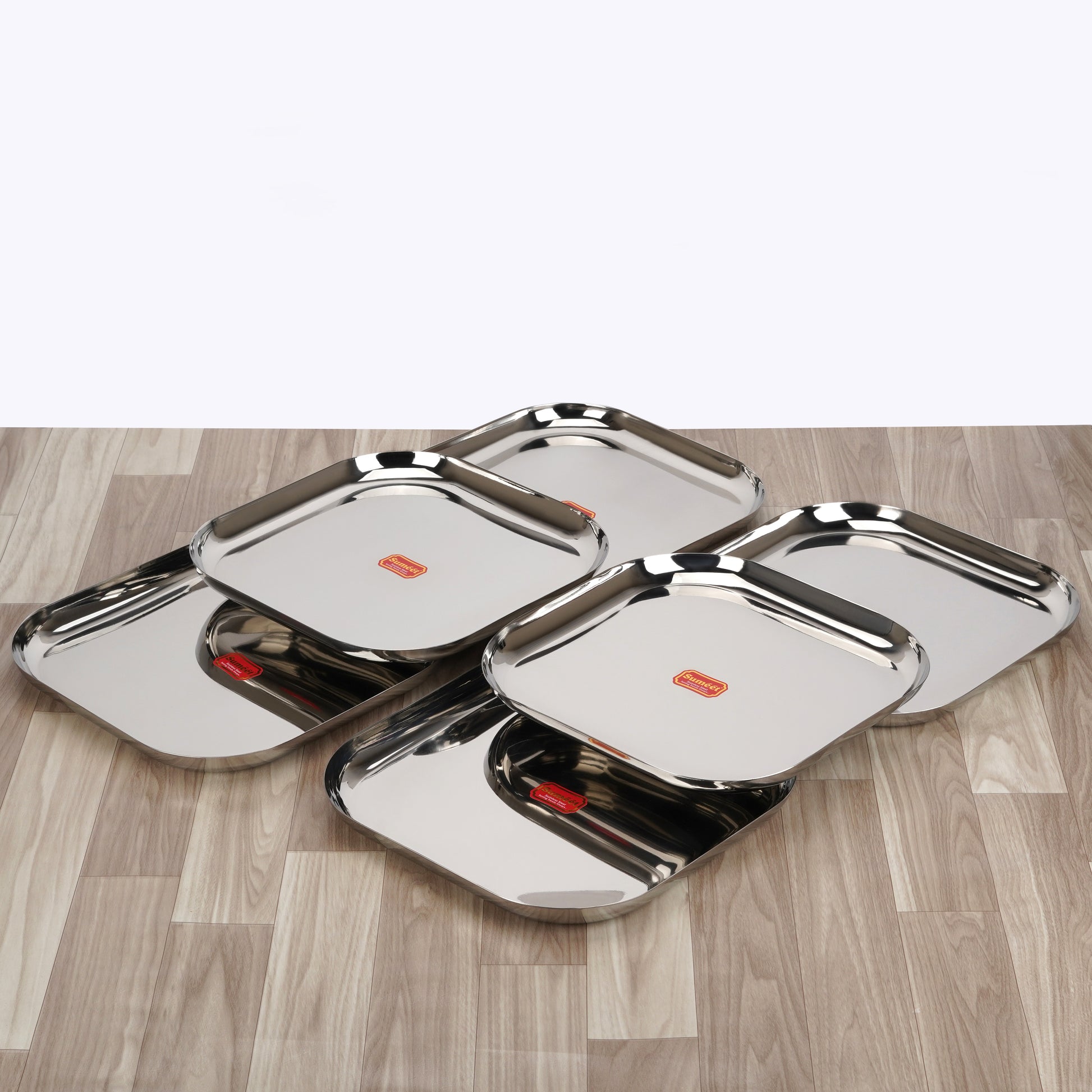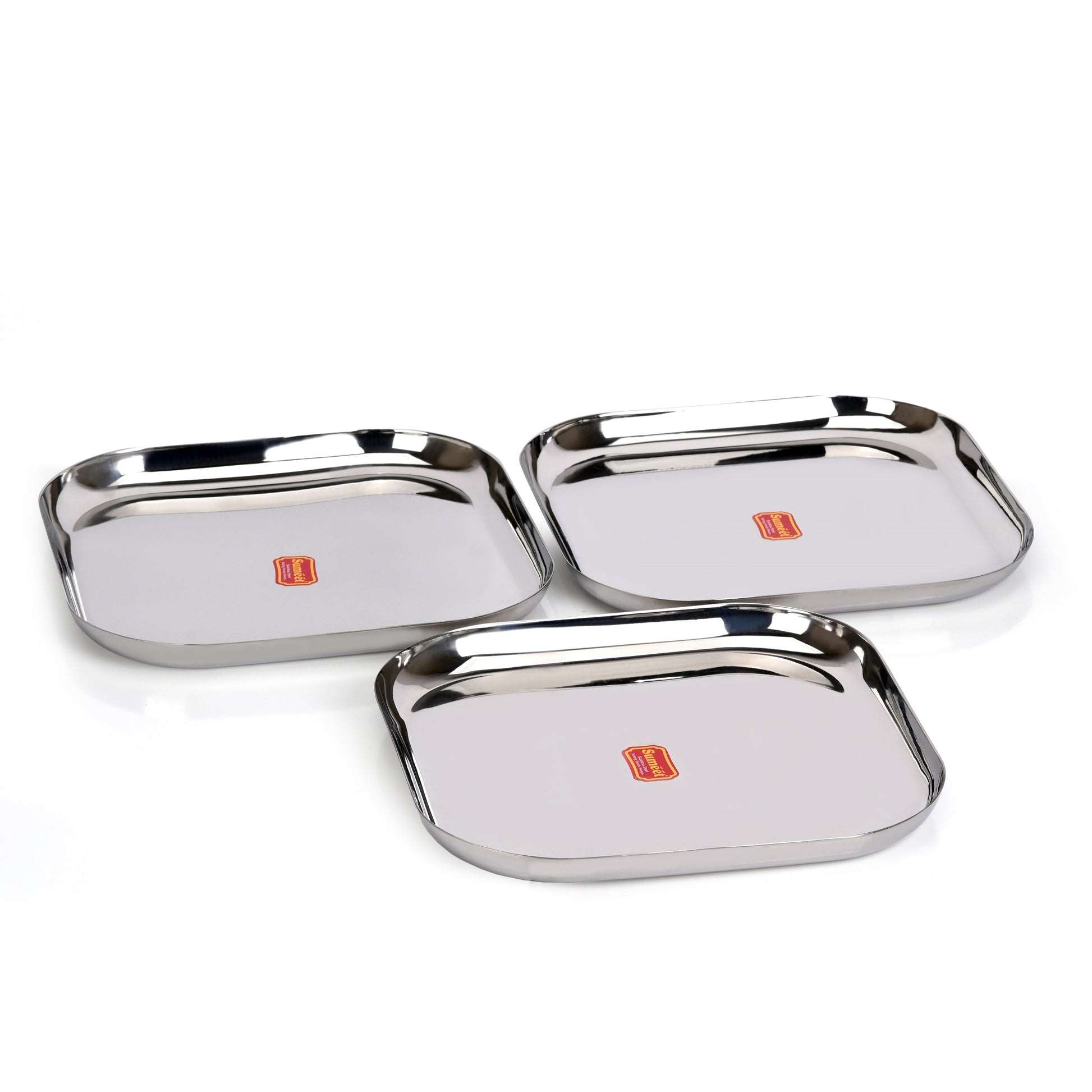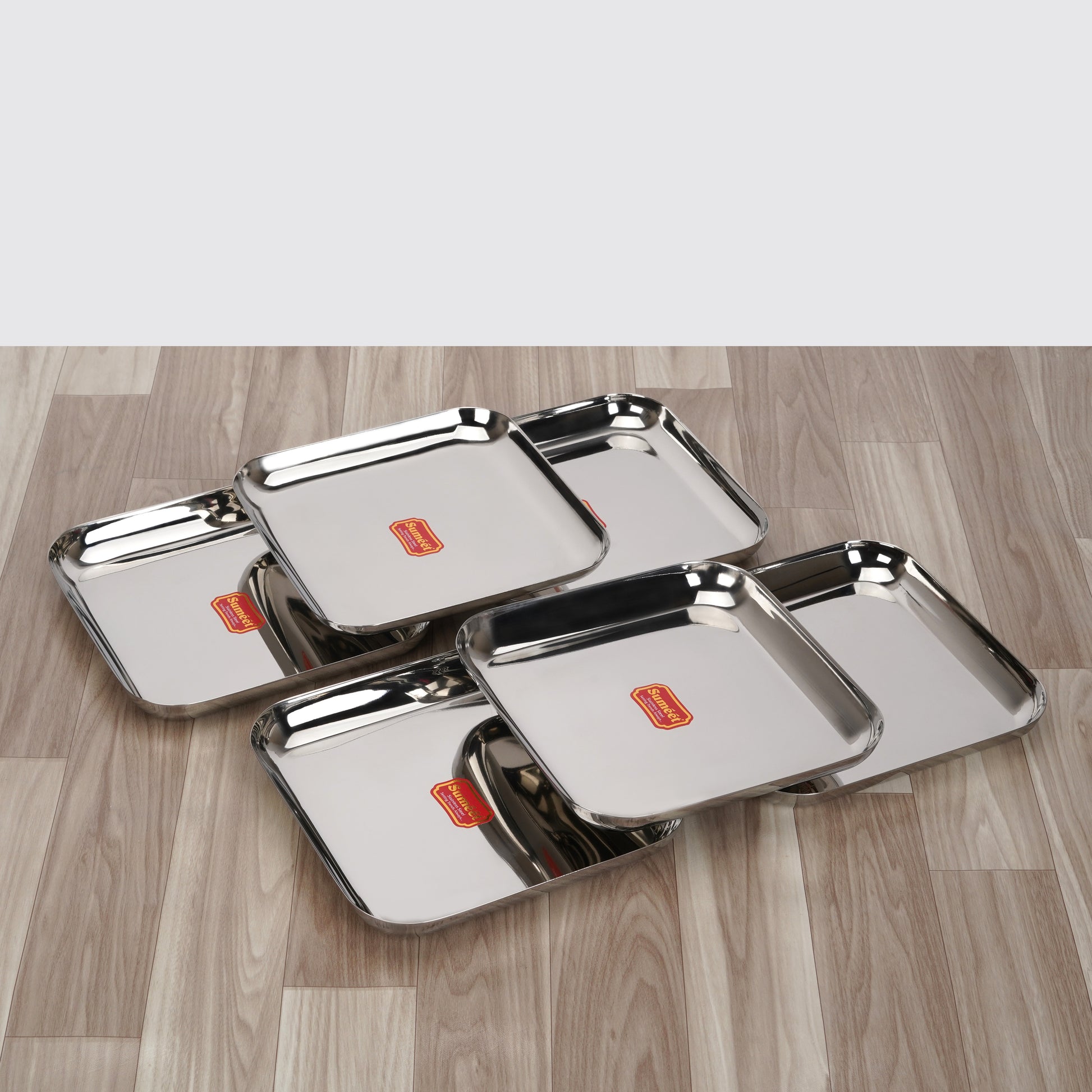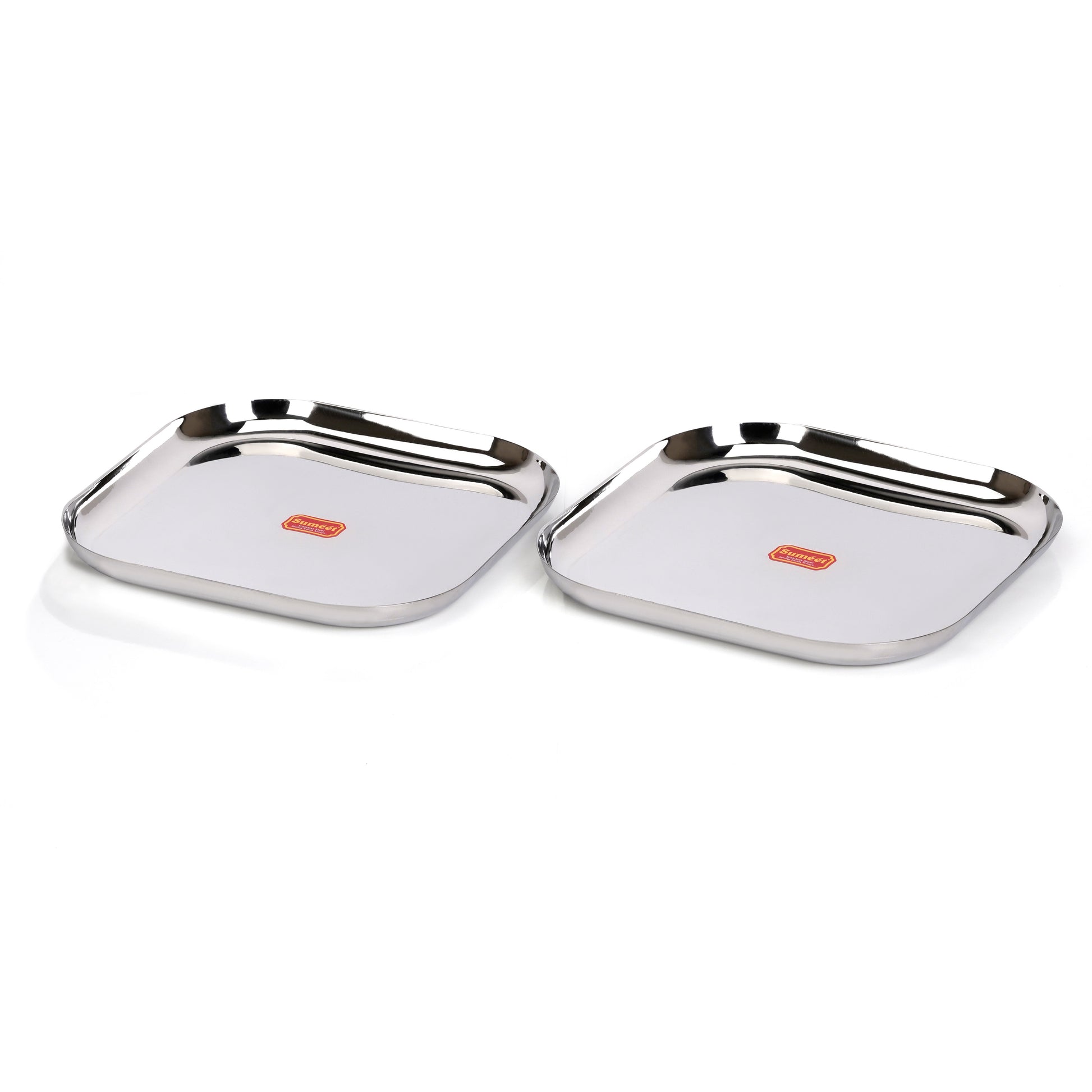 Sumeet Stainless Steel Big Square Shape Plate/Dinner Plate/Lunch - Meal Plate Set