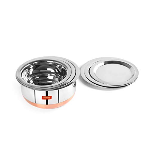 - Copper bottom vessels are used for cooking because of copper's excellent heat conductivity. Heat spreads evenly in copper cookware than in traditional pots. As copper effectively stores heat, the food stays warm for a longer period of time, hence you can store your food as well.