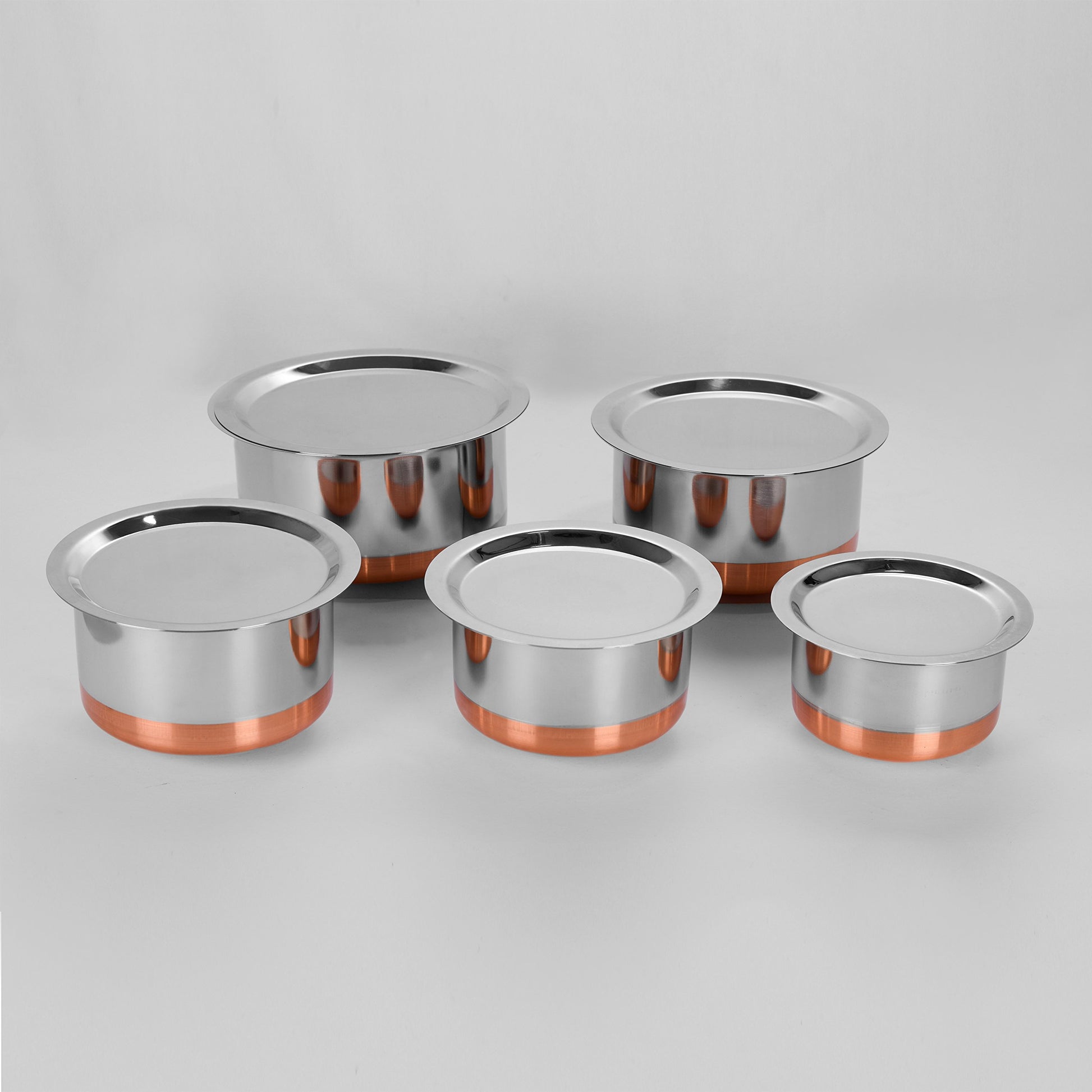 - [Material]: Premium Quality Mirror Finish Stainless Steel Tope/ Deep Vessel/ Cooking Pot With Copper Bottom For Kitchen. Export Quality Stainless Steel Making The Utensils Highly Durable, Long Lasting, Rust Free. Giving The Product A Long Live, Keeping It Beautiful For Years /Generations. Less Stain Steel Cookware!