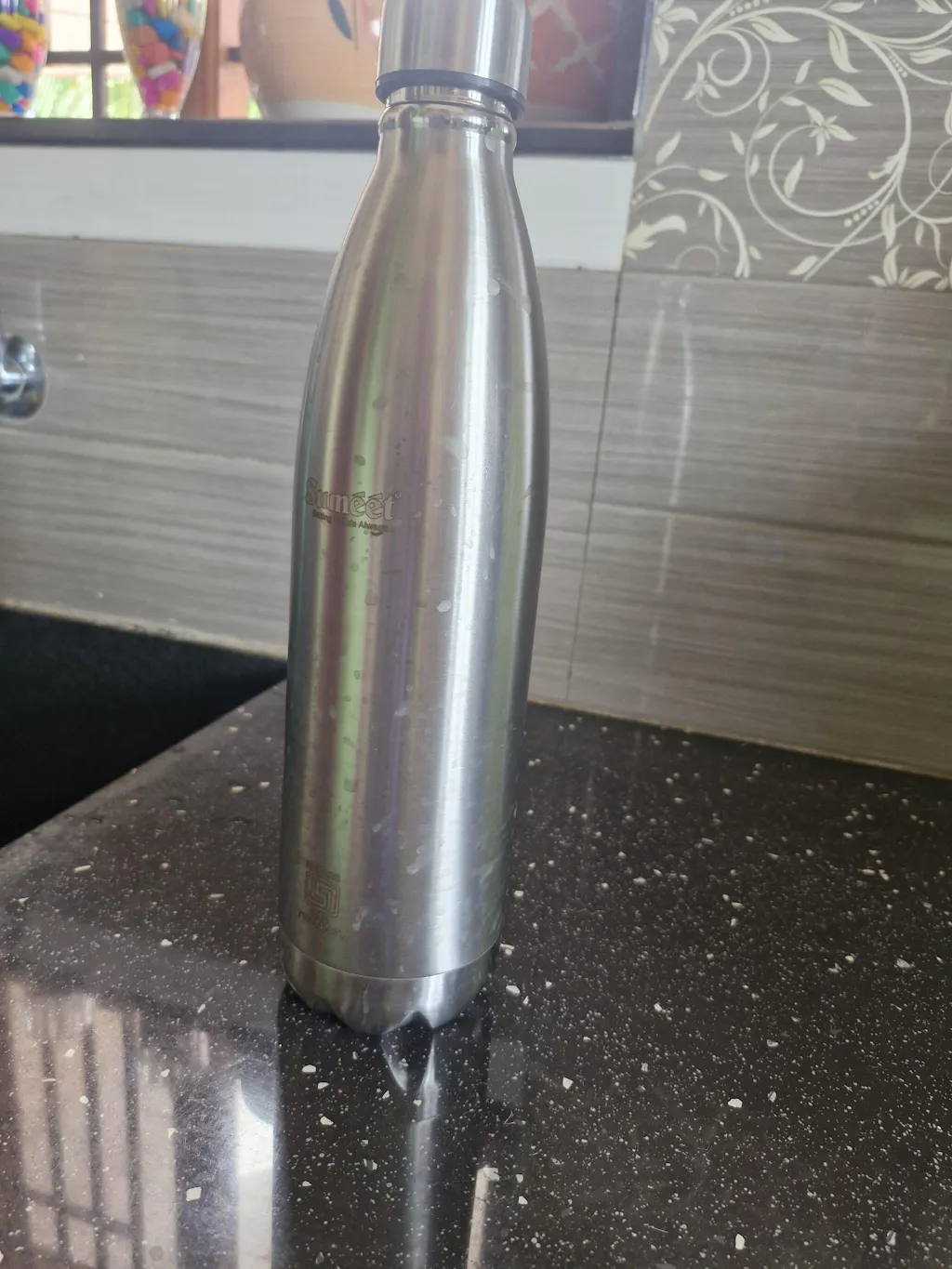 Every Sumeet product is carefully built to deliver exceptional quality. Sumeet presents Double Walled Insulated Stainless-Steel Flask which keeps water or beverages hot up to 24 hours or cold up to 24 hours as per the requirement. It encourages you to live healthy lifestyle by switching to steel, TRUST IN EVERY DROP. Its superior insulation high performance vacuum technology with Premium quality Stainless Steel construction makes sure that it Maintains the temperature of the liquid for 24 hours. It’s condensation resist property ensures that the bottle does not sweat or leave behind wet rings on the surface. This bottle has Matt Finishing which enhances the appeal and very user friendly too. Rust-proof and odor-free body keeps the liquids fresh and ready to be sipped when you need them the most. This Bottle is made of High-Quality Stainless-Steel body, Food-Grade and Non-Toxic, BPA-Free Stainless-Steel material that makes the bottles safe for use on a regular basis. It comes with a small mouth and neck, increasing the efficiency of the Flask by restricting the escape of the heat from inside. The small mouth also ensures that you can easily drink or pour your beverage without spilling and a wide stable base that makes the bottle prevent it from shaking. The high-quality silicon seal combined with threaded mouth ensures that your beverage does not leak. It is airtight and prevents any water leakage whether it is shaken or left on its side. The shape of the bottle enables it to fit in all types of your bags easily. This stainless-steel flask is reusable and recyclable and ideal to carry to your school, sports, office, travel, yoga, gym, or any outing. Store your favorite tea, coffee or hot chocolate and enjoy it while traveling or chilled lemonade or cold water as you set out. This bottle is easy to clean and dishwasher safe too. Pack contents: 1 Bottle; 8.5 X 8.5 X 34cm; Capacity: 1Ltr; Weight: 0.49 Kg