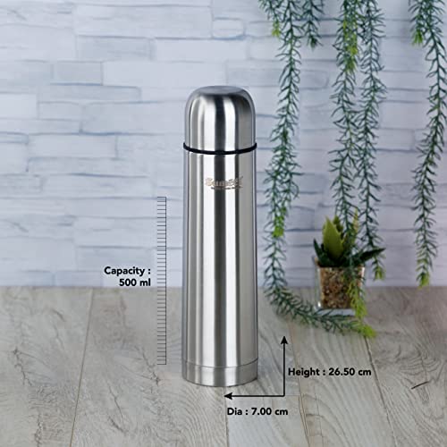 Sumeet Stainless Steel Double Walled Flask / Water Bottle, with Flip Lid, 24 Hours Hot and Cold, 500 ml, Silver - Set of 2 Pcs