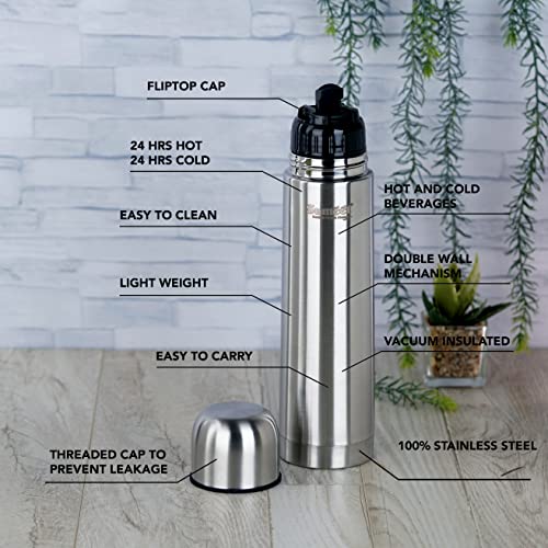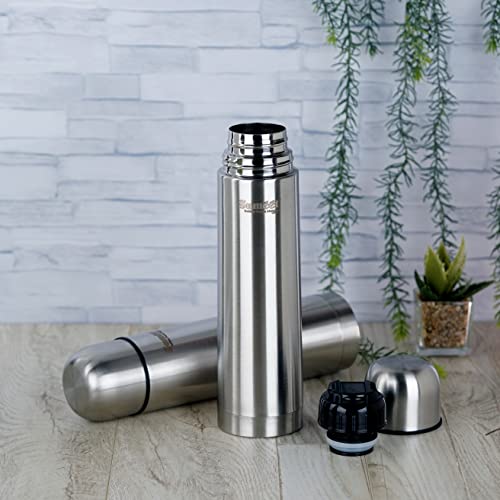 - Its superior insulation high performance vacuum technology with Premium quality Stainless Steel construction makes sure that it Maintains the temperature of the liquid for 24 hours. It’s condensation resist property ensures that the Flask does not sweat or leave behind wet rings on the surface. This Flask has Matt Finishing which enhances the appeal and very user friendly too. Rust-proof and odor-free body keeps the liquids fresh and ready to be sipped when you need them the most.