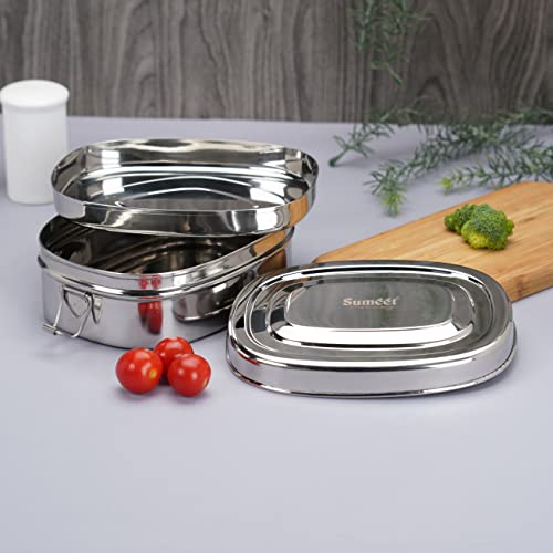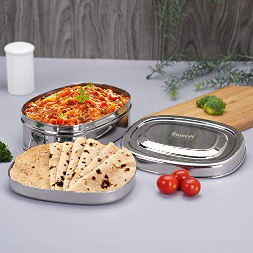 - "An ideal Lunch Box with stainless steel is extremely usable and handy presentation from the house of Sumeet. Meal pack allows you to easily pack a nutritious Lunch / Meal for you and your family. This Stainless-Steel Rectangle clip Tiffin comes with 1 Separator Steel Plate for Separating Rotis or Salad etc.