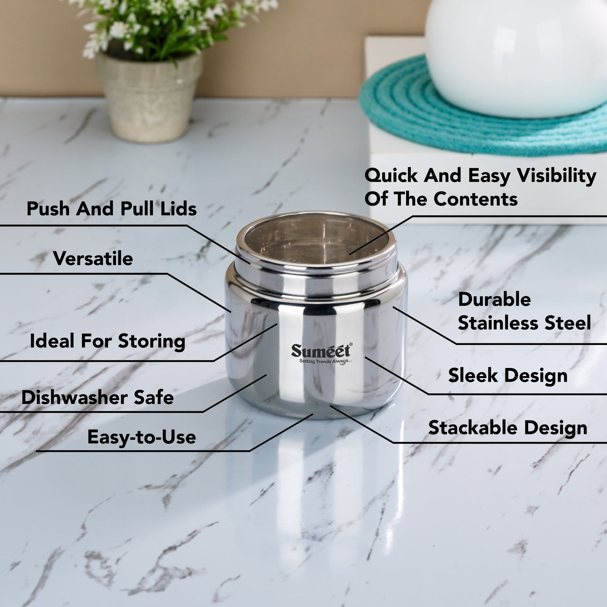 Sumeet Stainless Steel Small Canisters/Dabba/Storage Containers for Kitchen with See...Regular price Rs: 1,505.00Regular priceUnit price / perRs: 2,360.00Sale price Rs: 1,505.00 -
