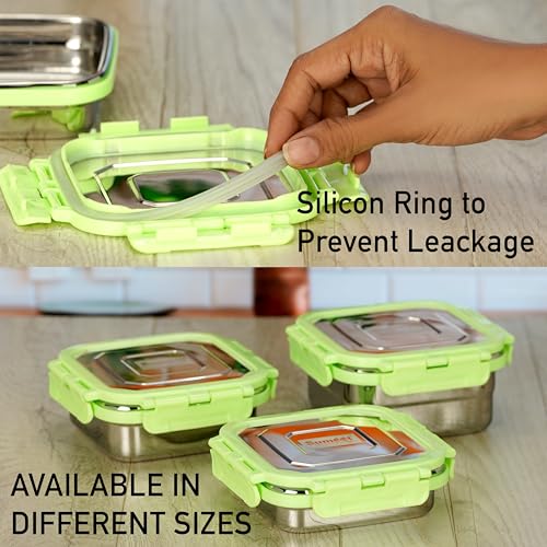 - Easy to Open and Close 4-Side Lock: Provides secure closure for peace of mind during transportation. Leak-Proof Design with Silicon Ring: Prevents any accidental spills or leaks, maintaining cleanliness and minimizing waste. Airtight and Odorless: Ensures that food stays fresh and free from unwanted odors. Rust-Free and Food Grade: Offers durability and safety for food storage, without compromising on quality.