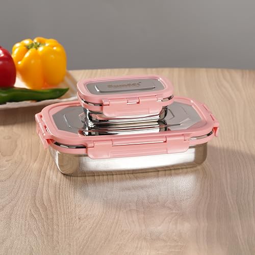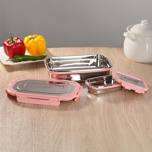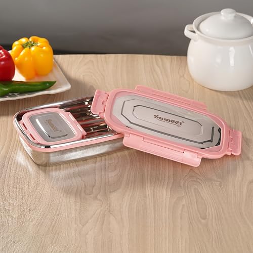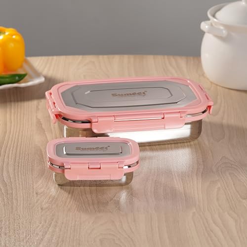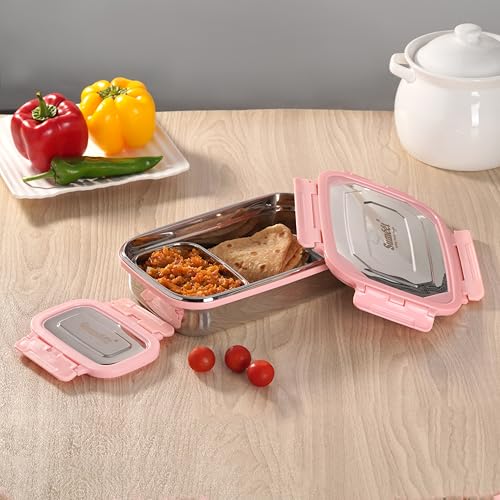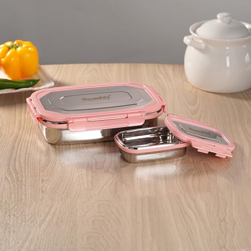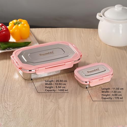 Sumeet Twin Pack Stainless Steel Airtight, Leak Proof Lunch Box, Tiffin for School, Office, Kids 1000ml+170ml, Pack of 1, Pink